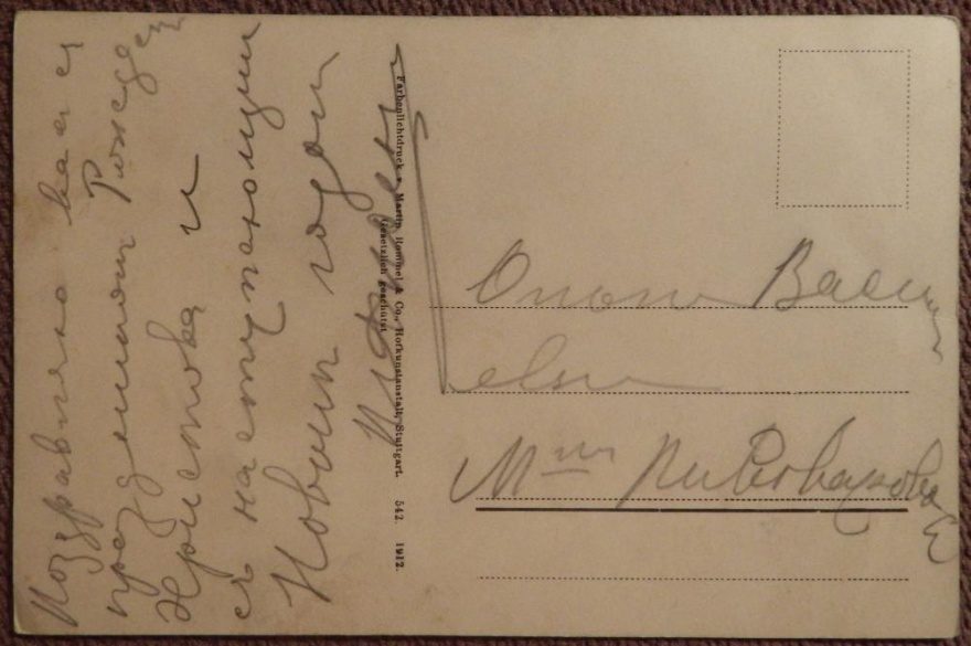 Описание открытки: Farbenlichtdruck v Martin Rommel & Co., Hofkunstanstalt, Stuttgart. 542. 1912. Gesetzlich geschutz