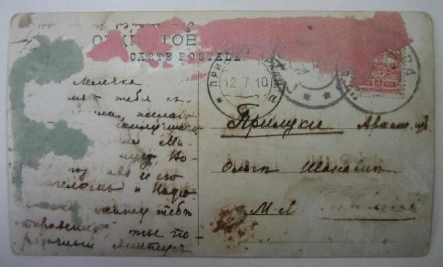 {[нрзб]} [нрзб] Лелечка. [?поздрав]ляю тебя с [?днем] [?Анг]ела желаю [нрзб] [!на]аилучшего [нрзб]ий Ми[нрзб] [нрзб]шу. Но[нрзб] поз[?дравь]вь и его [!Ан]гелом и Надю. [нрзб] скажу тебе откровенно, ты порядочный свинтус.