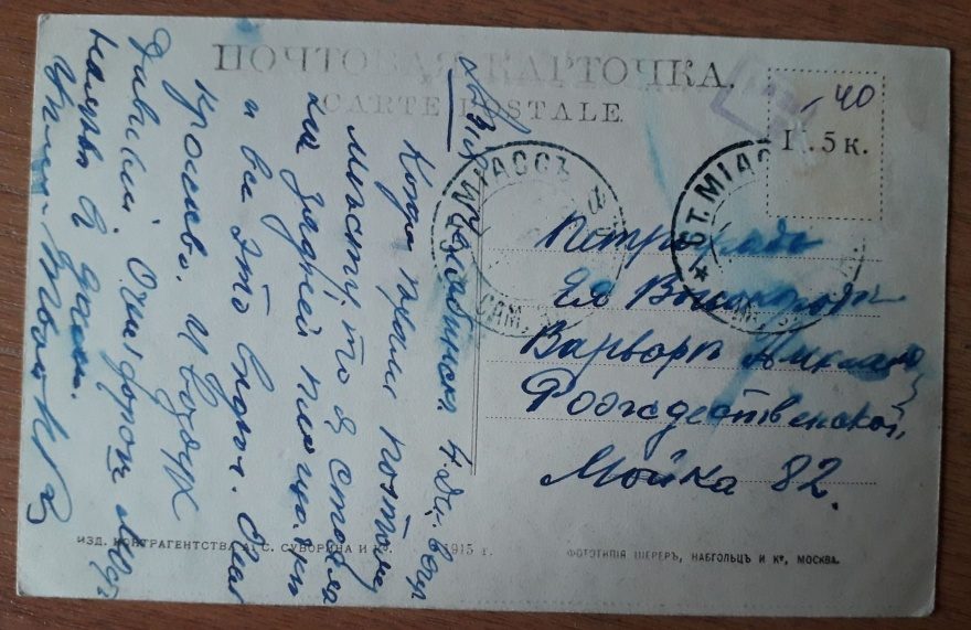 Описание открытки: ИЗД. КОНТРАГЕНТСТВА А. С. СУВОРИНА И Ко. 1915 г. ФОТОТИПИЯ ШЕРЕР, НАБГОЛЬЦ И Ко, МОСКВА.