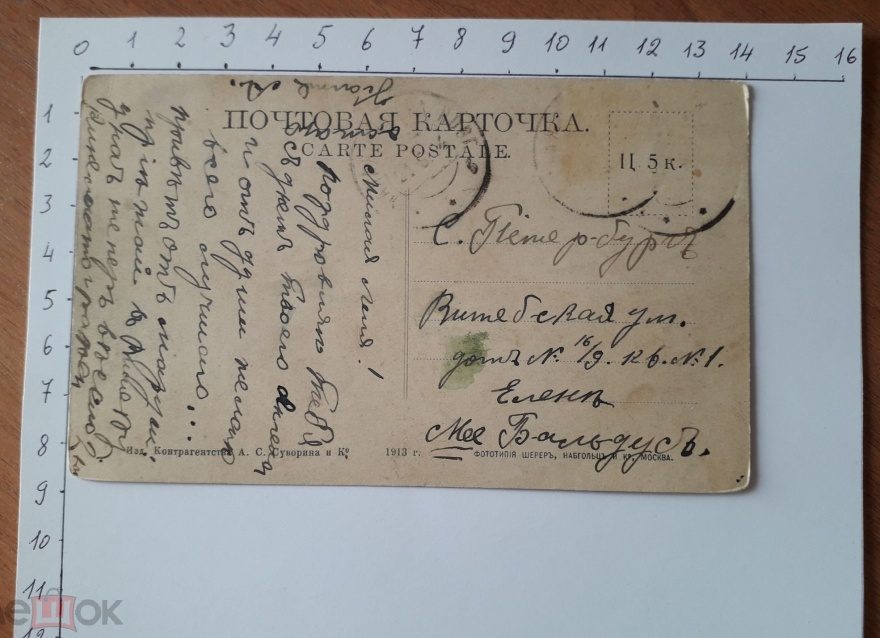 Описание открытки: Изд. Контрагентство А. С. Суворина и Ко. 1913 г. Фототипия Шерер, Набгольц и Ко, Москва. Ц. 5 к.