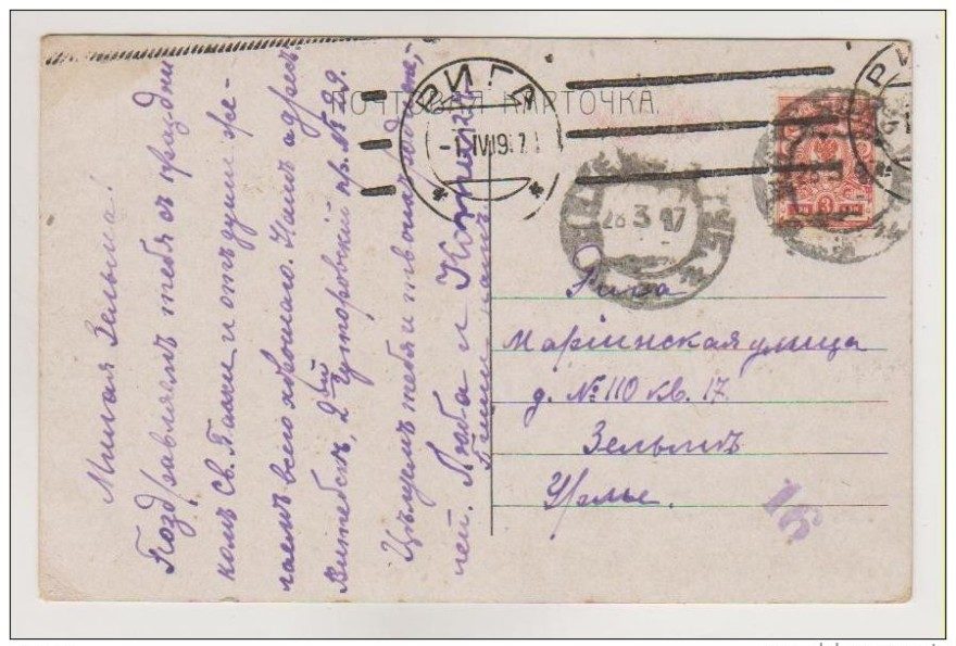 Милая Зельма! Поздравляем тебя с праздником Св[ятой] Пасхи и от души желаем всего хорошего. Наш адрес: Витебск, 2-ой Гуторовский пр[еулок] [*проспект] № 29. Целуем тебя и твоих родителей. Люба и [?Котик]. Пиши нам.