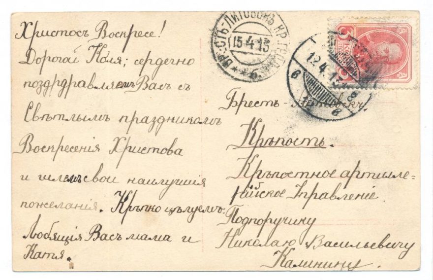 Дата отправления, штамп: 12 апреля 1913