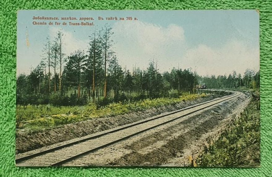 Описание картинки: Забайкальск. железн. дорога. В тайге на 705 в. Chemin de fer de Trans - Baikal