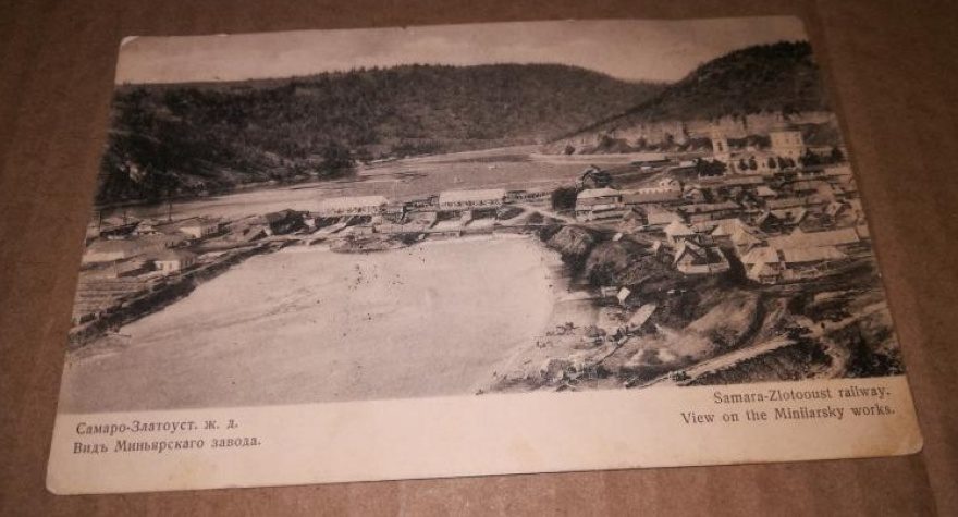 Описание картинки: Самаро-Златоуст. ж. д. Вид Миньярскаго завода. Samara-Zlotooust railway. View on the Miniiarsky works.