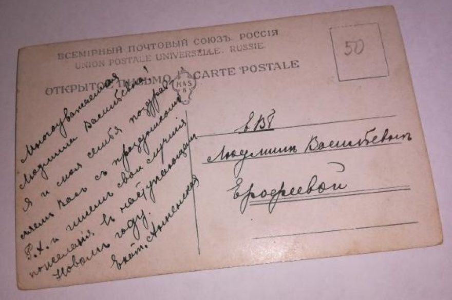 Многоуважаемая Людмила Васильевна! Я и моя семья поздравляем Вас с праздником Р[ождества].Х[ристова]. и шлем свои лучшие пожелания в наступающем Новом году. Екат[ерина] Анненская