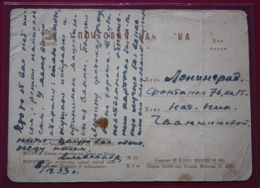 Описание открытки: Серия из журнала "СССР НА СТРОЙКЕ". Главлит № Б-1015. ИЗОГИЗ № 955. Ц. 5 к. Тираж 50.000 экз. Гознак. Мытная, 17. 1931.