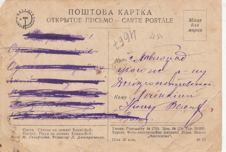 {Привет из Одессы жене Нине от Вани 25/VI 37} [нрзб]