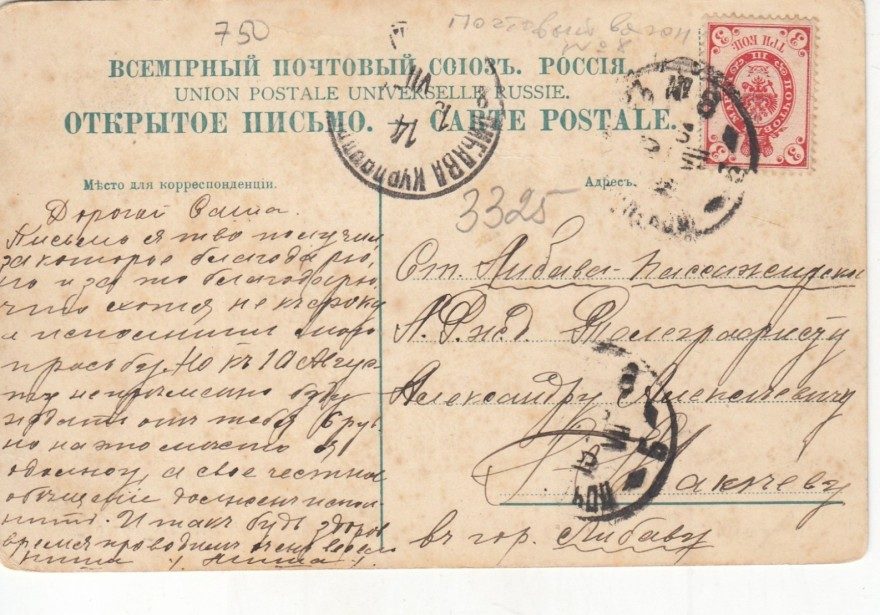 Куда: Ст. Либава-Пассажирское Л[ибаво] Р[оменская] ж[елезная] д[орога] гор. Либаву