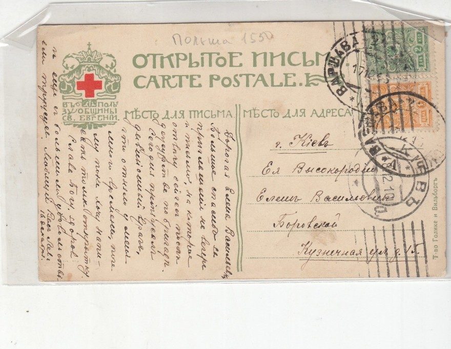 {Польша 1550}Дорогая Елена Васильевна Большое спасибо за приглашение на вечер и письмо, на которое отвечу сейчас после дежурства по бригаде. Сегодня приезжал дивизионный врач, что отняло у меня много времени, почему пока хочу написать только открытку. Слава Богу, здоров и еще с большим удовольствием тружусь. Любящий Вас Лев. 16 декабря