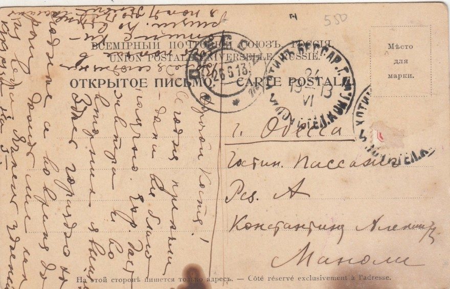Куда: г. Одесса, Гостин[ица] Пассаж, Рез[иденция] А