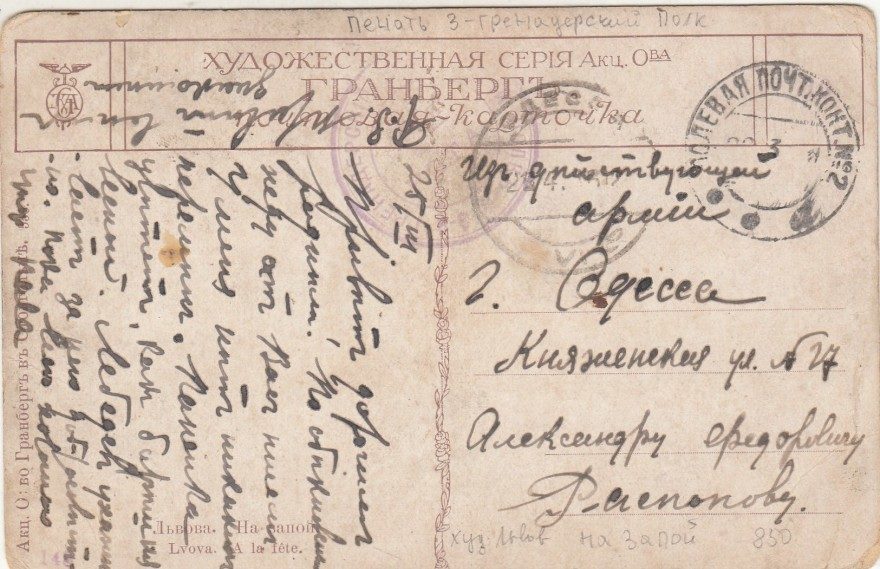25/III Привет дорогим родным! По обыкновению жду от Вас писем. У меня нет никаких перемен. Папайка цветет, как барышня весной. Лебедев ухаживает за нею добросовестно. Пока всего хорошего целую Пава P.S. привет всем знакомым