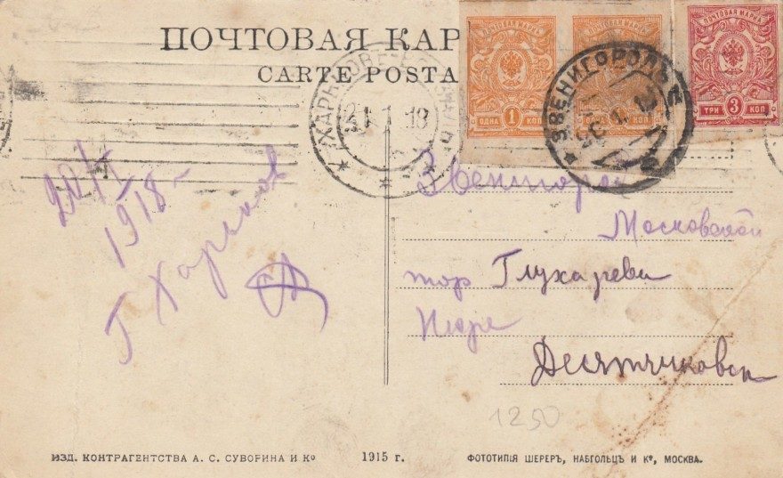 Описание открытки: Изд. Контрагенства А.С. Суворина и Ко 1915 г. Фототипiя Шерер, Набгольц и Ко, Москва