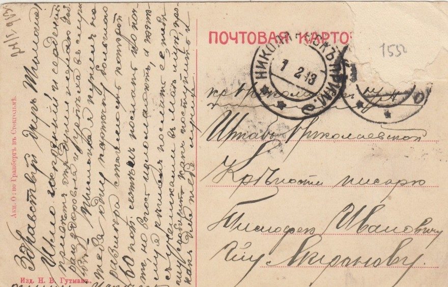 Дата получения, штамп: 01 февраля 1913