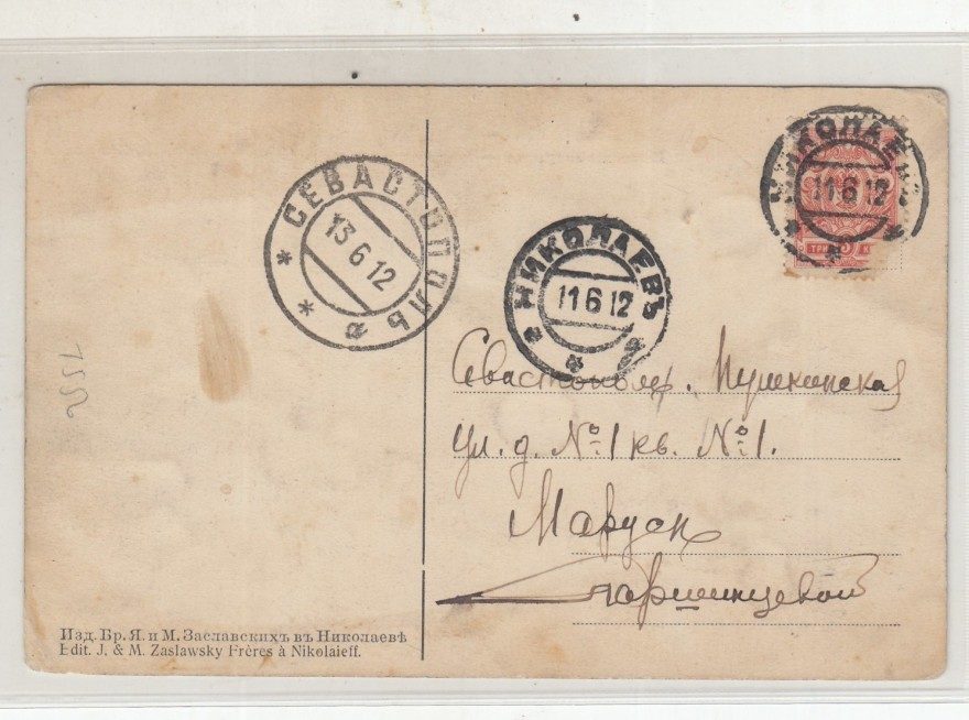Описание открытки: Изд. Бр. Я. и М. Заславских в Николаеве. Edit. J. & M. Zaslawsky Frères a Nikolaieff