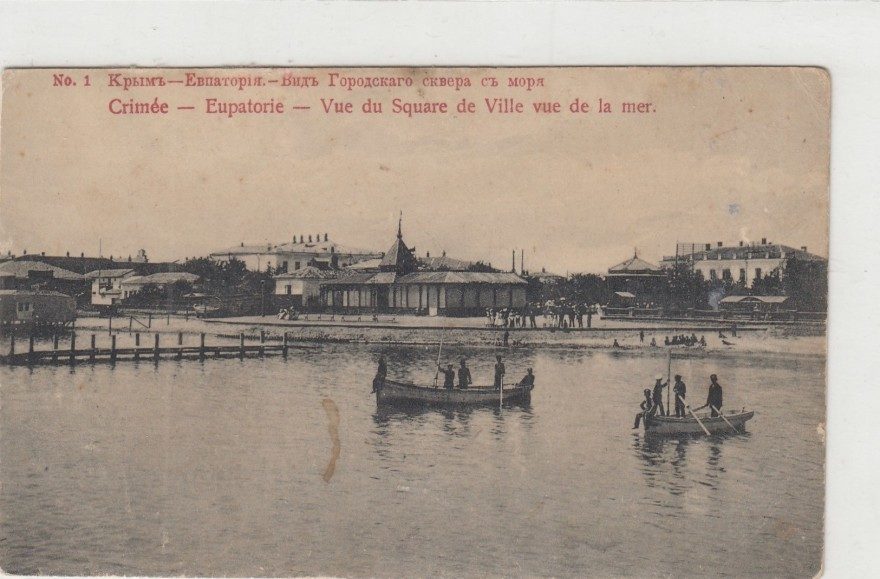 Описание картинки: No. 1 Крым-Евпатория. — Вид Городского сквера с моря. Crimée — Eupatorie — Vue du Square de Ville vue de la mer.