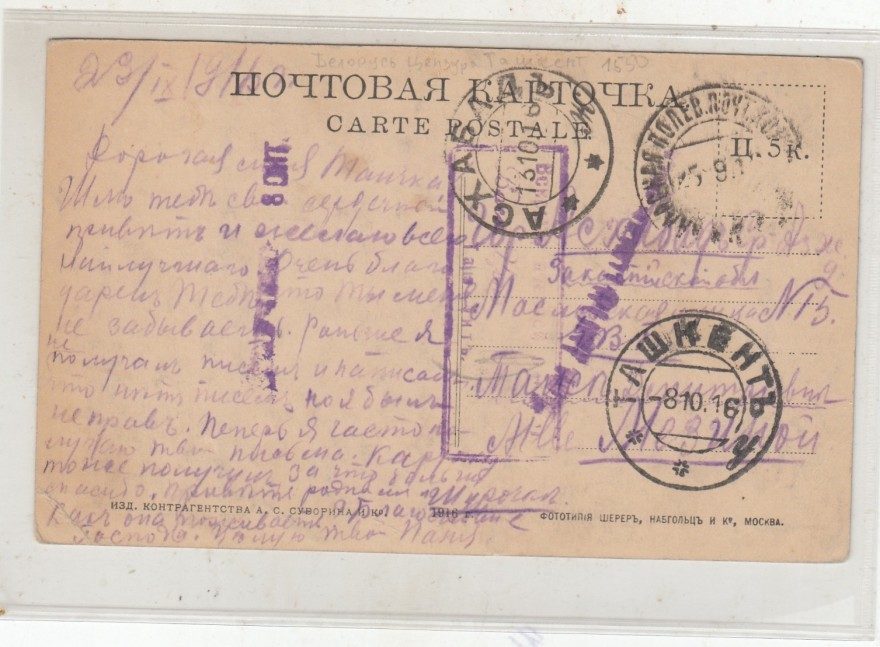 Описание открытки: ИЗД. КОНТРАГЕНСТВА А. С. СУВОРИНА И Ко. 1916 г. ФОТОТИПИЯ ШЕРЕР, НАБГОЛЬЦ И Ко, МОСКВА.