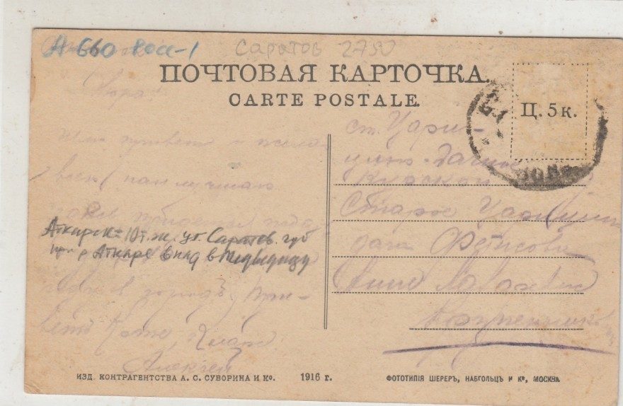 Описание открытки: Изд. Контрагенства А.С. Суворина И Ко. 1916 г. Ц. 5к.