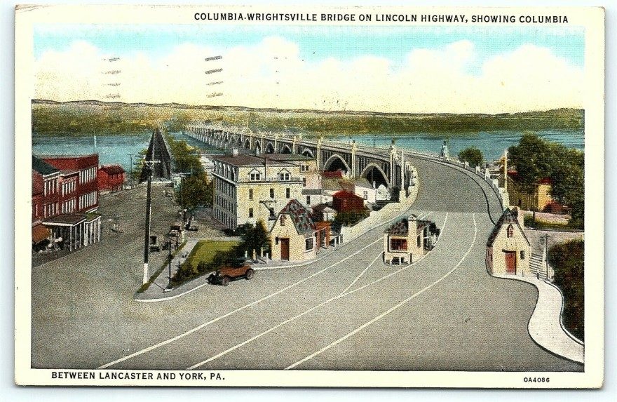 Описание картинки: Columbia-Wrightsville bridge on Lincoln Highway, showing Columbia