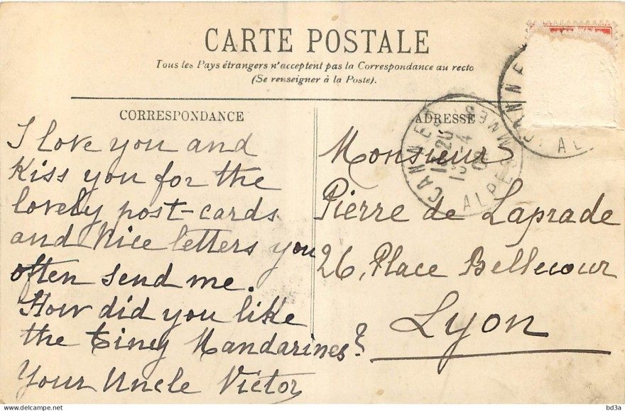 Получатель: Monsieur Pierre de Laprade
