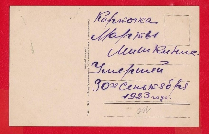 Карточка Марты Мишкинис Умершей 30го Сентября 1923 года