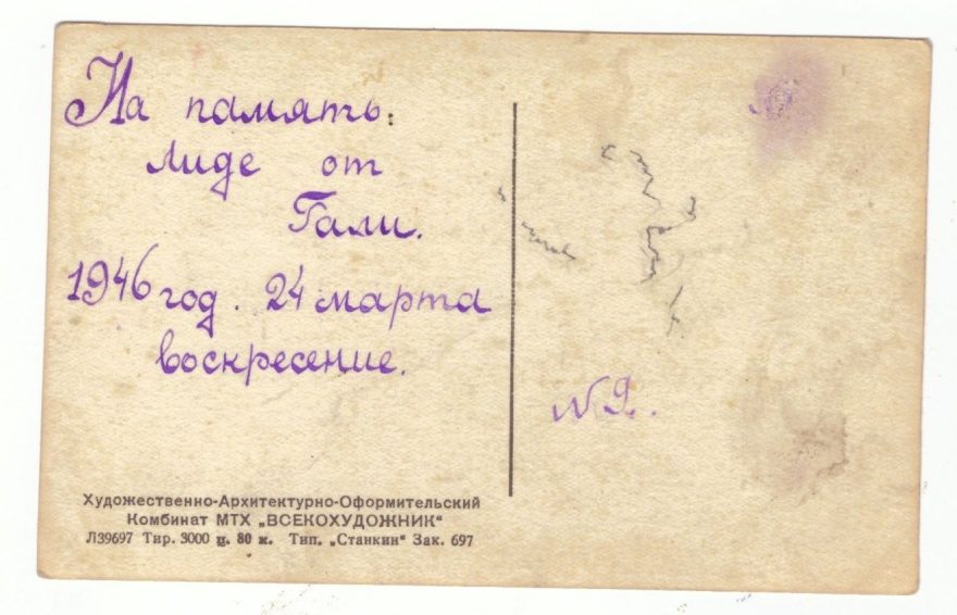На память: Лиде от Гали. 1946 год. 24 марта воскресение. №9