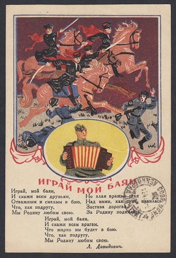 Описание картинки: Играй, мой баян, и скажи всем друзьям, Отважным и смелым в бою, Что, как подругу, Мы родину любим свою. Что, как подругу, Мы родину любим свою. Но злая вражья стая Над нами, как туча, взвилась. Застава дорогая За родину поднялась. Играй, мой баян, и скажи всем друзьям, Отважным и смелым в бою, Что, как подругу, Мы родину любим свою. Что, как подругу, Мы родину любим свою.