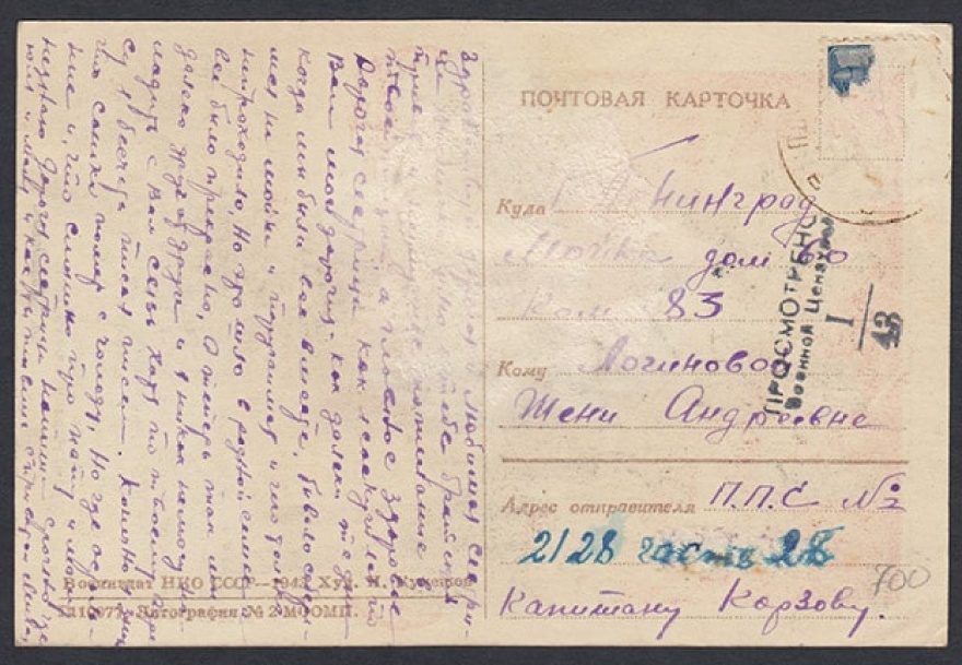 Описание открытки: Военкомат НКО СССР - 1943. Худ. И. Кулешев. [нрзб] Типография № 2 МООМП.