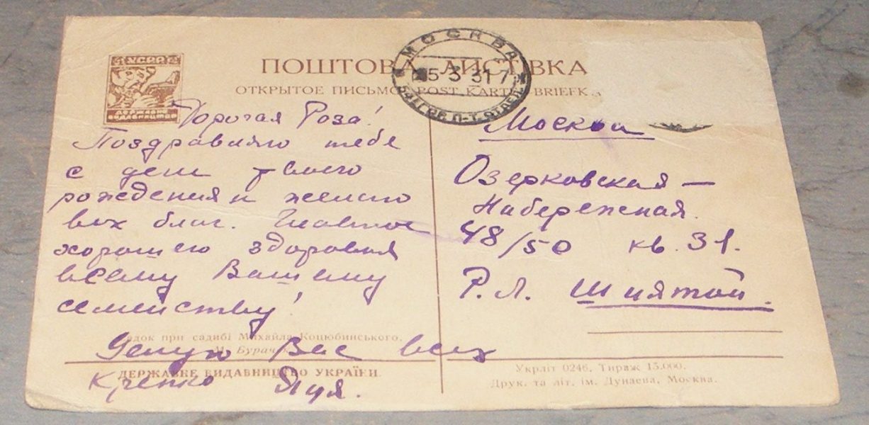 Описание открытки: Укрлiт 0246. Тираж 15000. Друк. та лiт iм. Дунаева, Москва. ДЕРЖАВНИ ВИДАВНИЦIВО УКРАIНИ