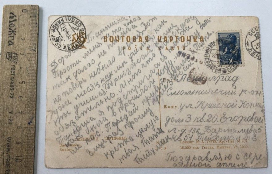 Откуда: Л[енинград] 136 Бармалеева 5 кв 51