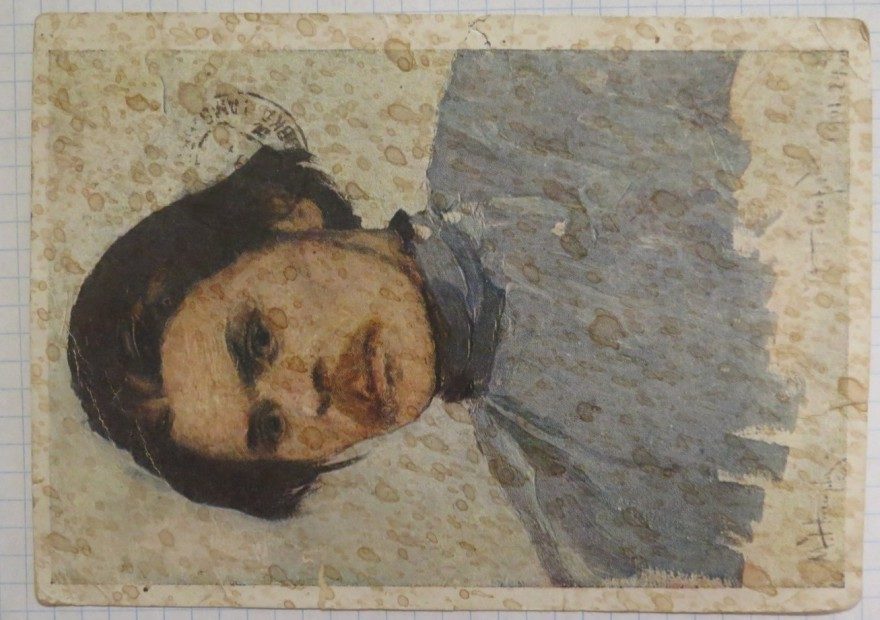 Здравствуйте мои дорогие родители, милая Лиза. Высылаю я вам открытку, которую купил на остановку возле Москвы. Привет всем моим родным, привет от Миши. 22/[нрзб]