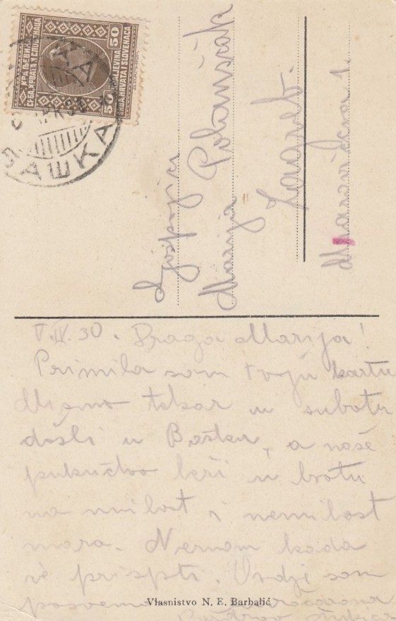 Описание открытки: Vlasnistvo N. E. Barbatić