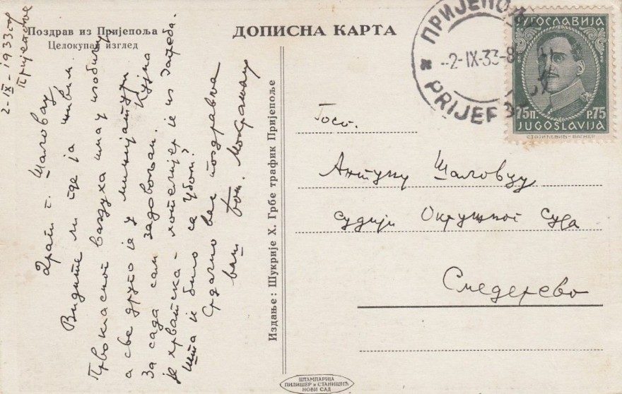 Зетская бановина, г. Приеполе—Дунайская бановина, г. Смедерево, 02.11.1933