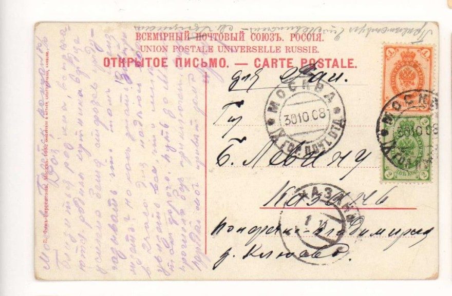 Описание открытки: Всемирный почтовый союз. Россия. Union postale universelle russie. Открытое письмо. — Carte postale.