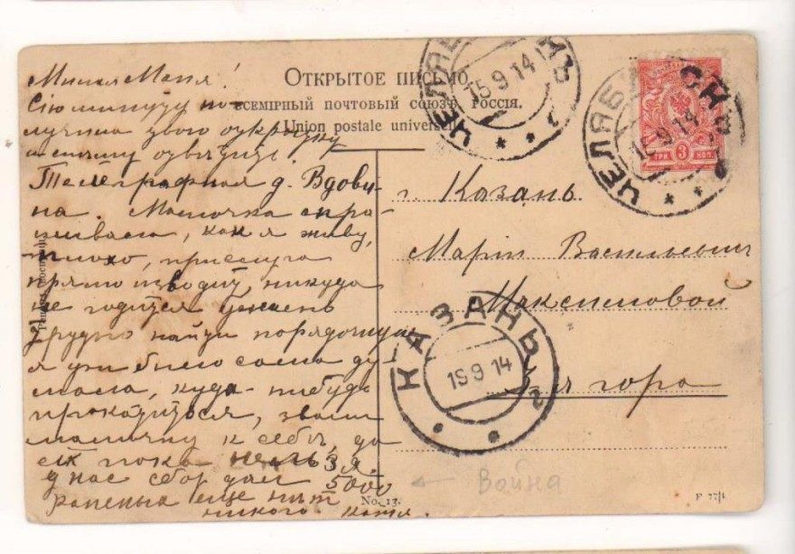 Дата отправления, штамп: 15 сентября 1914