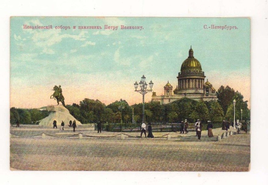 Описание картинки: Исаакиевский собор и памятник Петру Великому. С.-Петербург.