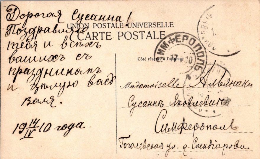 Дата отправления, штамп: 1910