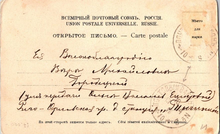 Дата отправления, штамп: 10 июля 1904