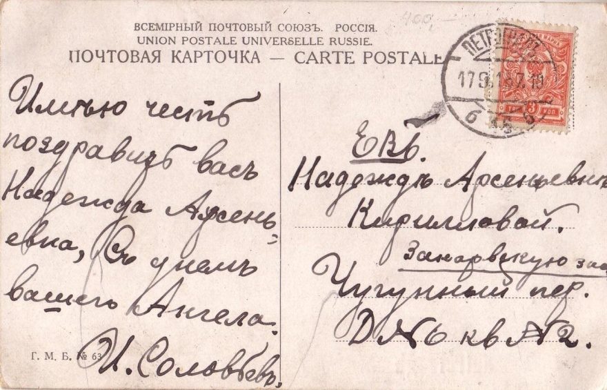Имею честь поздравить вас Надежда Арсеньевна, С днем вашего Ангела. И.Соловьев